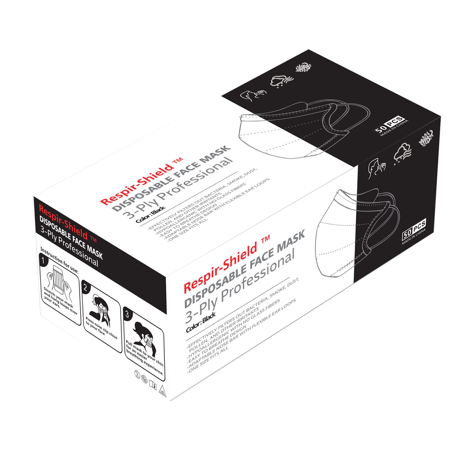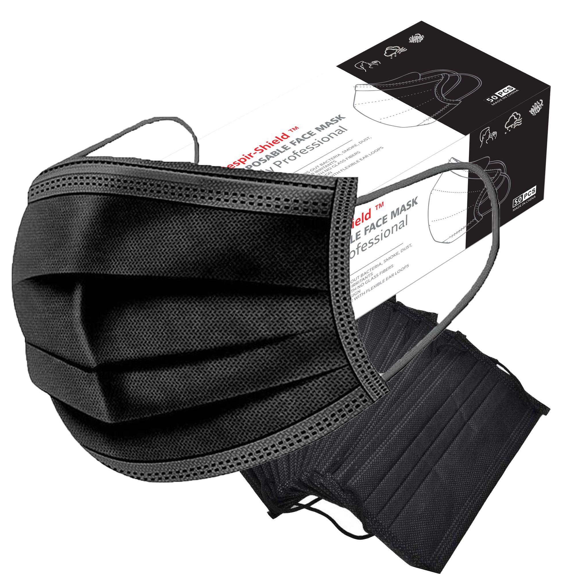 Respir-Shield™ 100PCS - 3 PLY Black Non-Medical Disposable Face Masks;  Comfortable Elastic Ear loops Face Masks;  Breathable for Daily Protection Air Respir-Shield™ 100PCS - 3 PLY Black Non-Medical Disposable Face Masks;  Comfortable Elastic Ear loops Face Masks;  Breathable for Daily Protection Air Respir-Shield™ 100PCS - 3 PLY Black Non-Medical Disposable Face Masks;  Comfortable Elastic Ear loops Face Masks;  Breathable for Daily Protection Air