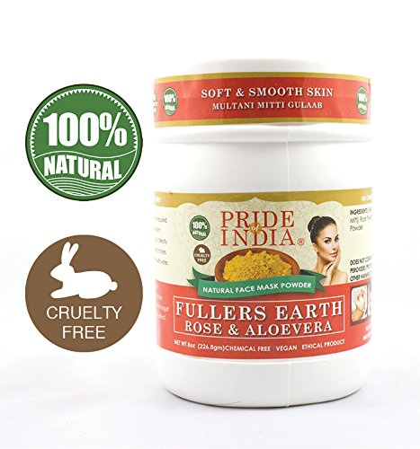 Pride Of India - Fuller's Earth Indian Clay Face Mask Powder w/Rose & Aloevera, Half Pound Jar, 100% Natural Pride Of India - Fuller's Earth Indian Clay Face Mask Powder w/Rose & Aloevera, Half Pound Jar, 100% Natural Pride Of India - Fuller's Earth Indian Clay Face Mask Powder w/Rose & Aloevera, Half Pound Jar, 100% Natural