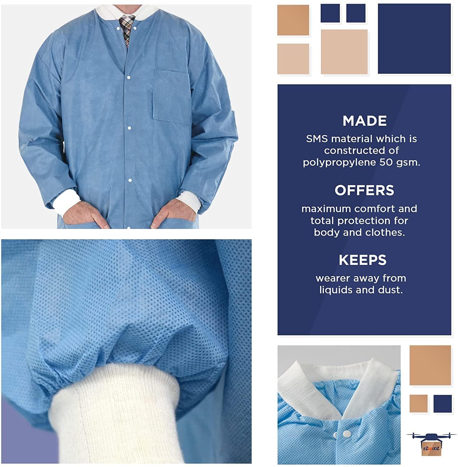 Disposable Lab Jacket, 31 Inches Long. Pack of 10 Ceil Blue Disposable Hip-Length Workwear Large. SMS 50 gsm Disposable Shirts with Snaps Front Disposable Lab Jacket, 31 Inches Long. Pack of 10 Ceil Blue Disposable Hip-Length Workwear Large. SMS 50 gsm Disposable Shirts with Snaps Front Disposable Lab Jacket, 31 Inches Long. Pack of 10 Ceil Blue Disposable Hip-Length Workwear Large. SMS 50 gsm Disposable Shirts with Snaps Front