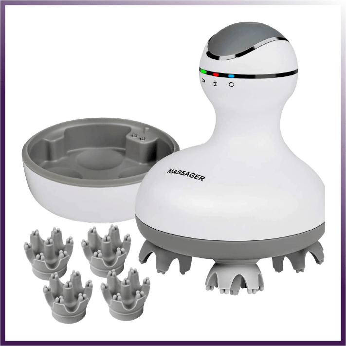 The Smart Electric Scalp Massager is the perfect choice for those looking to relieve stress and promote relaxation while enjoying the benefits of a deep, thorough scalp massage. This handheld portable head massager can be used anywhere and everywhere due to its cordless, rechargeable, and waterproof design.