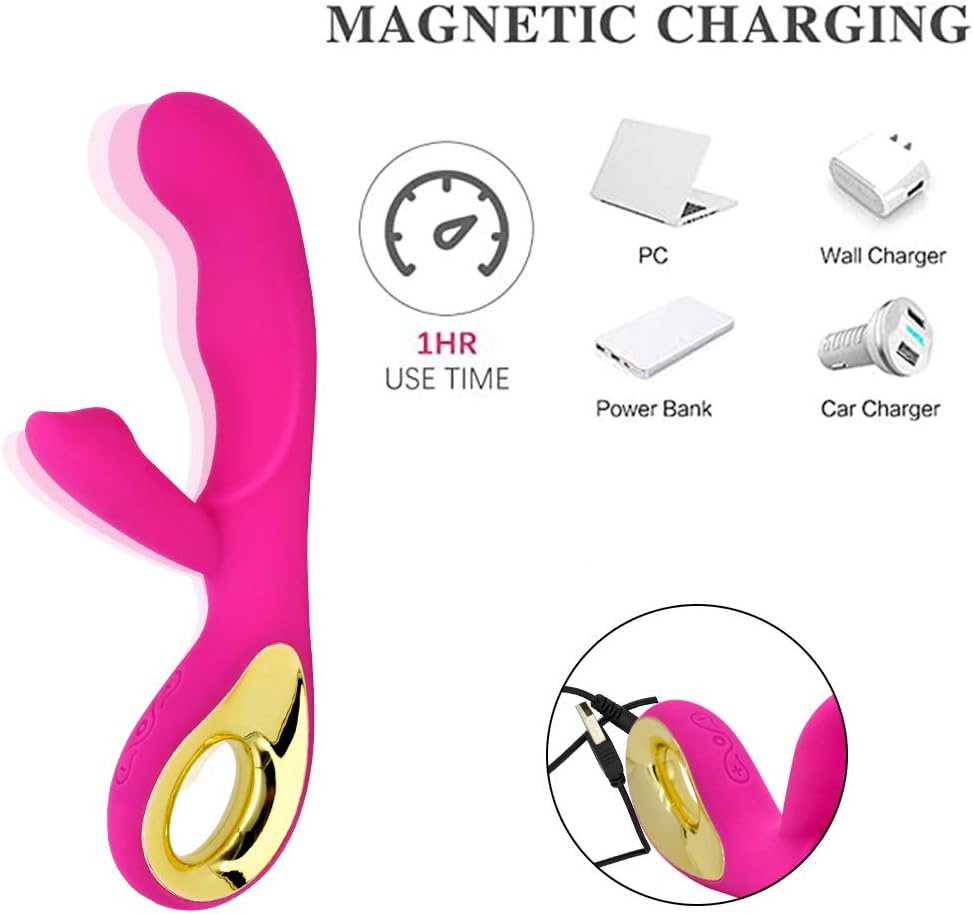 4.Rehcargeable Battery: Charging with the magnetic points is a breeze. Battery life with a full charge will last around 1-2 hours of play depending on how you use the rabbit vibrator. Coming with a cord, super simple to charge, it only takes 2 hours to fully charge, the vibrator dildo can be used a few times on a single charge.