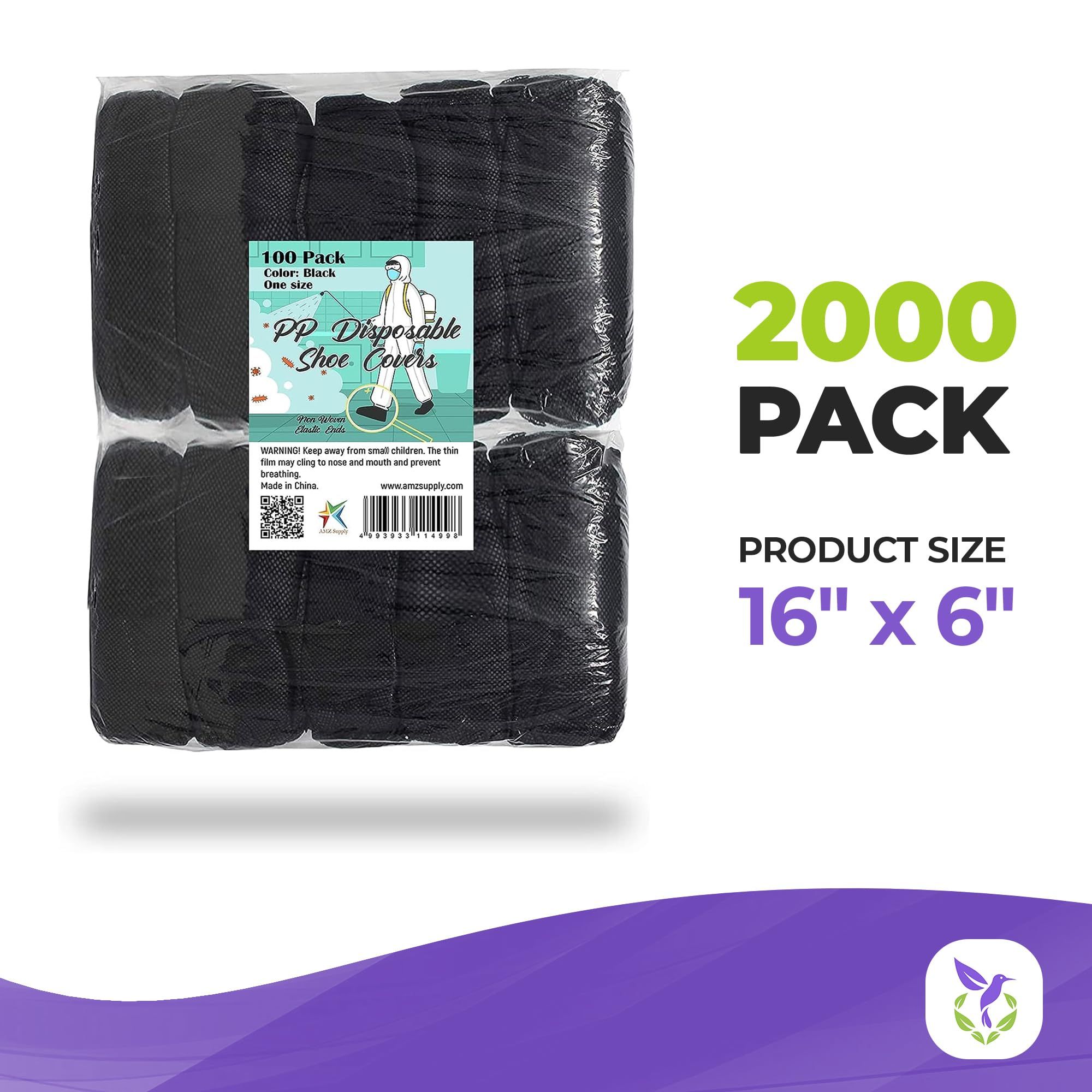 1.Pack of 2000 Black Disposable Shoe Covers for Indoors, 16 x 6 Inch. Seamless bottom and inner seams for use in low particulate clean areas or any general industrial application. Surgical booties for shoes are ideal for keeping your floors, cars and carpets clean.