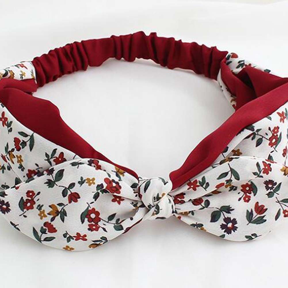 Home > Crepe Floral Bowknot Double Layer Headband Chiffon Red Flowers Headwear Stretchy Headwrap