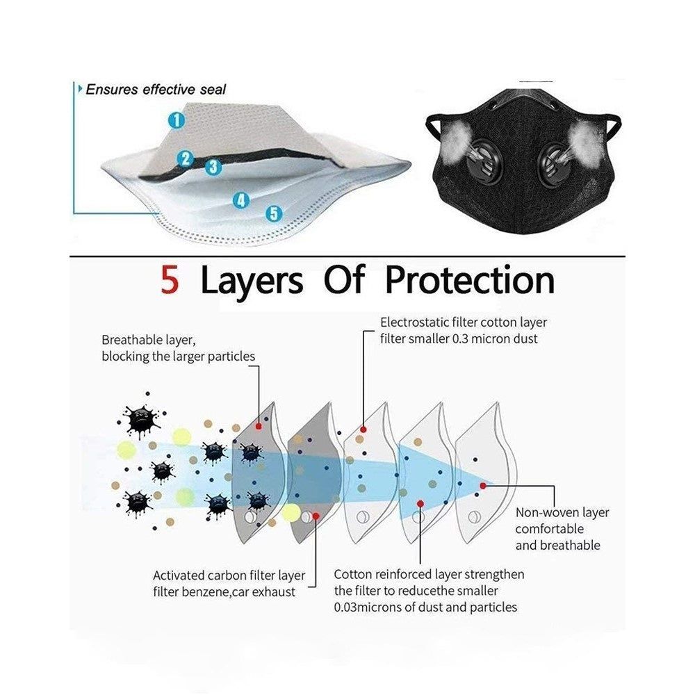 This Vivzone Activated Carbon Sport Face Mask helps you breathe clean fresh air in any environment by filtering up to 95% of particles as small as 0.3 microns, including bacteria, viruses, germs, exhaust, dust, chemicals, pollen, smoke, and fumes.