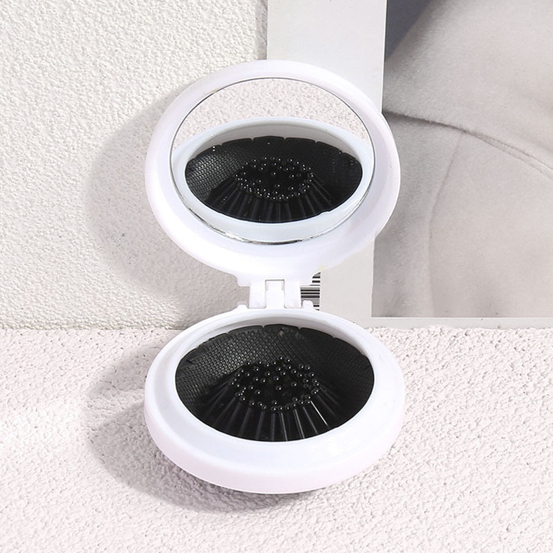 Home > 2-in-1 Folding Air Cushion Mini Comb With Mirror; Round Compact Massage Comb For Purse