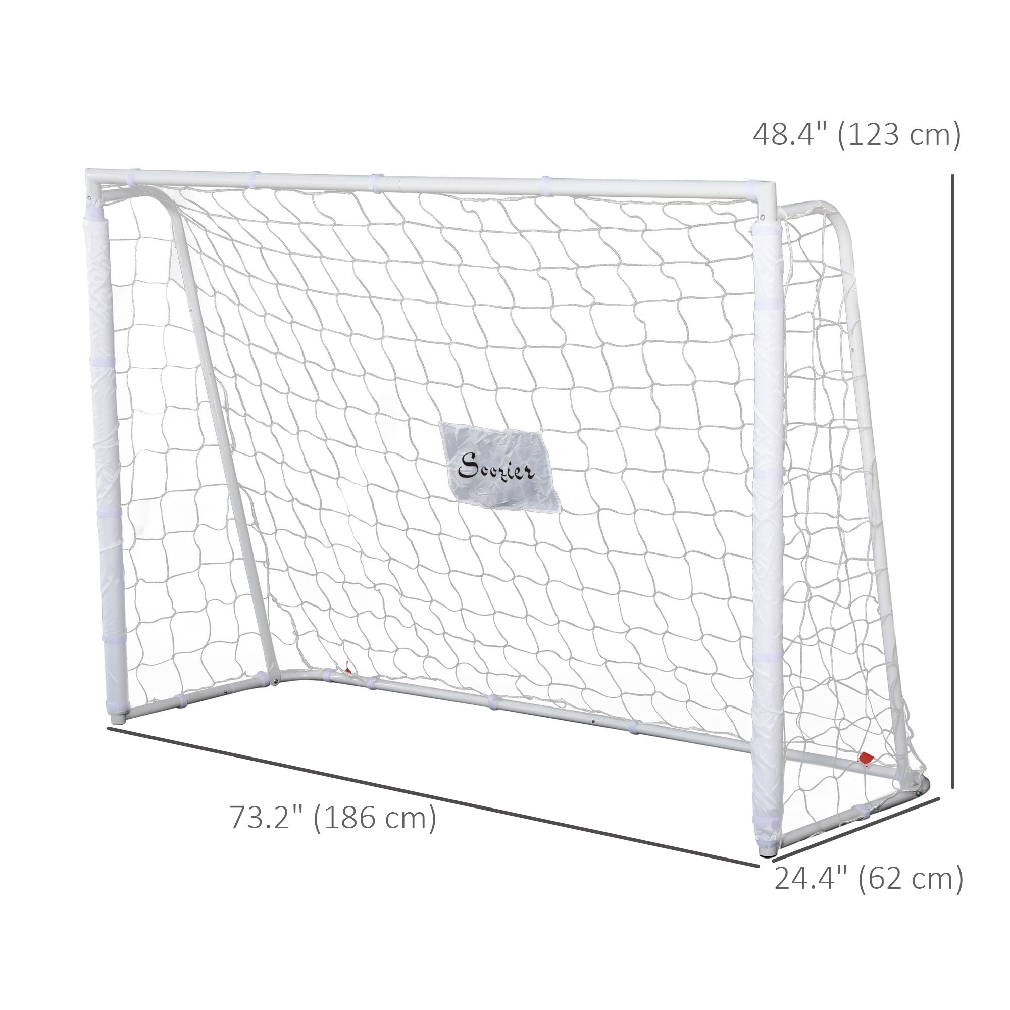 6ft x 4ft Soccer Goal Net with Metal Frame, PE Mesh, Ground Stakes, Easy Assembly, White 6ft x 4ft Soccer Goal Net with Metal Frame, PE Mesh, Ground Stakes, Easy Assembly, White 6ft x 4ft Soccer Goal Net with Metal Frame, PE Mesh, Ground Stakes, Easy Assembly, White