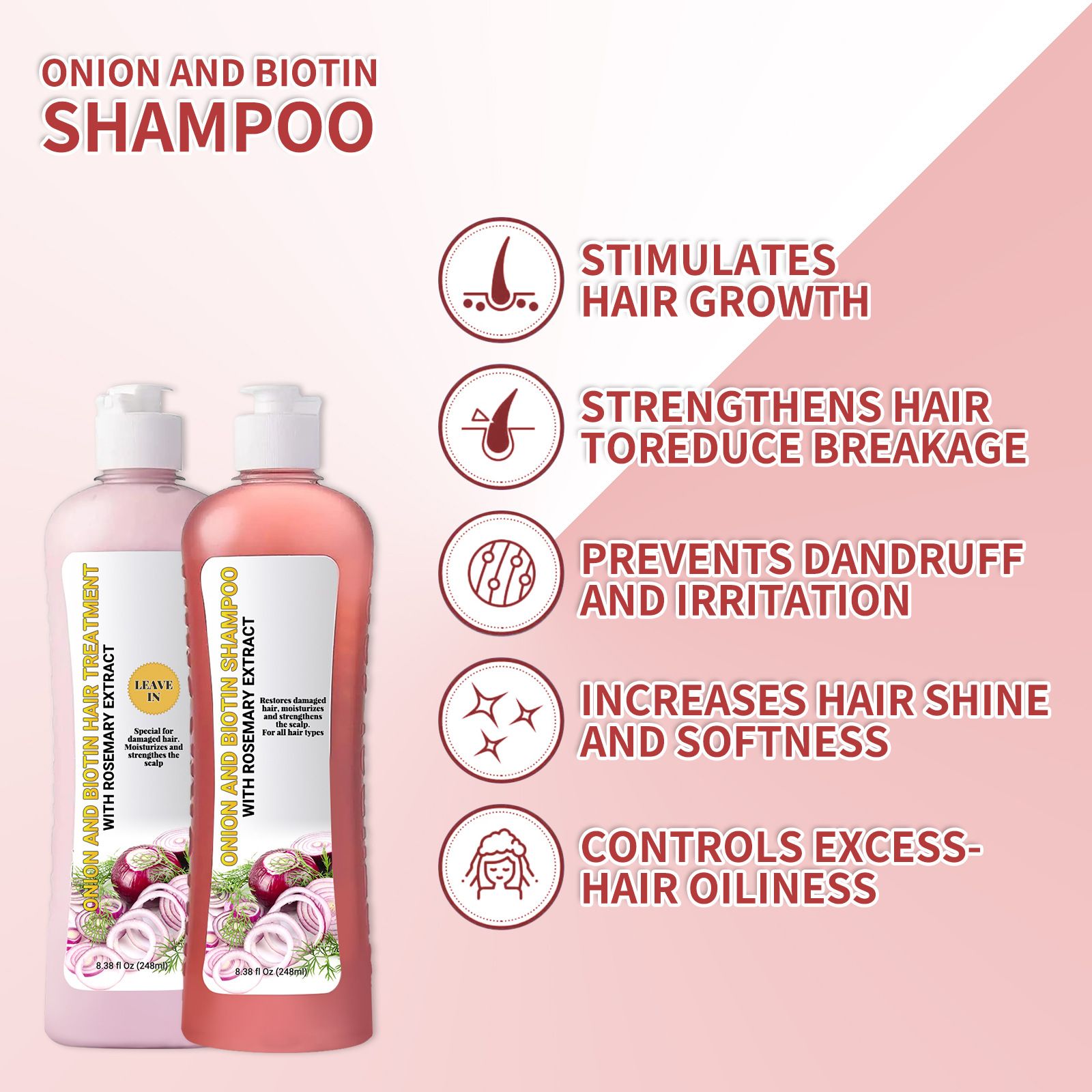 Onion Biotin Rosemary Hair Care Set: Nourishes Hair Roots Tones Scalp Enhances Luster Cleanses 248ml