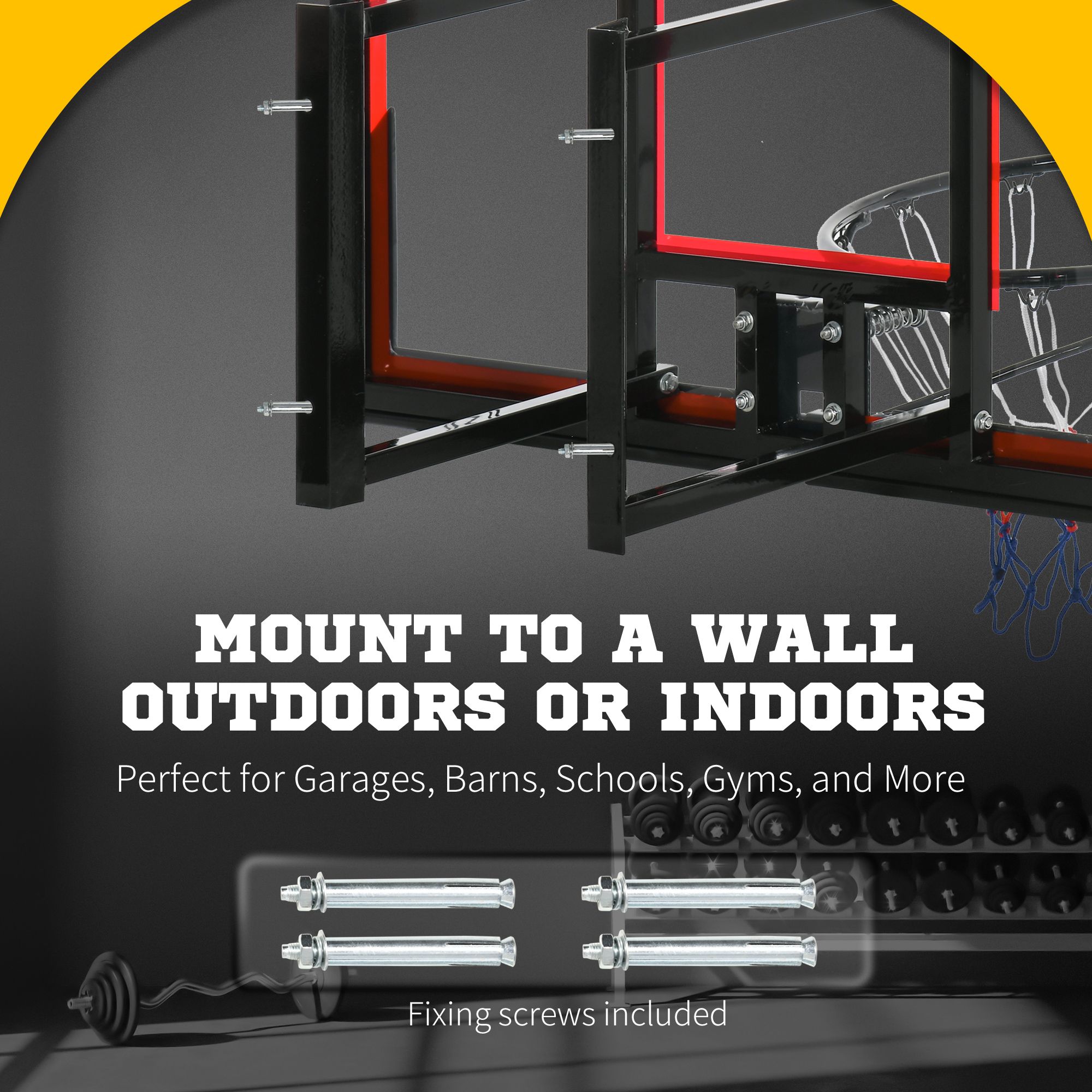 Wall Mounted Basketball Hoop with 43'' x 30'' Shatter Proof Backboard, for Indoor and Outdoor, Black